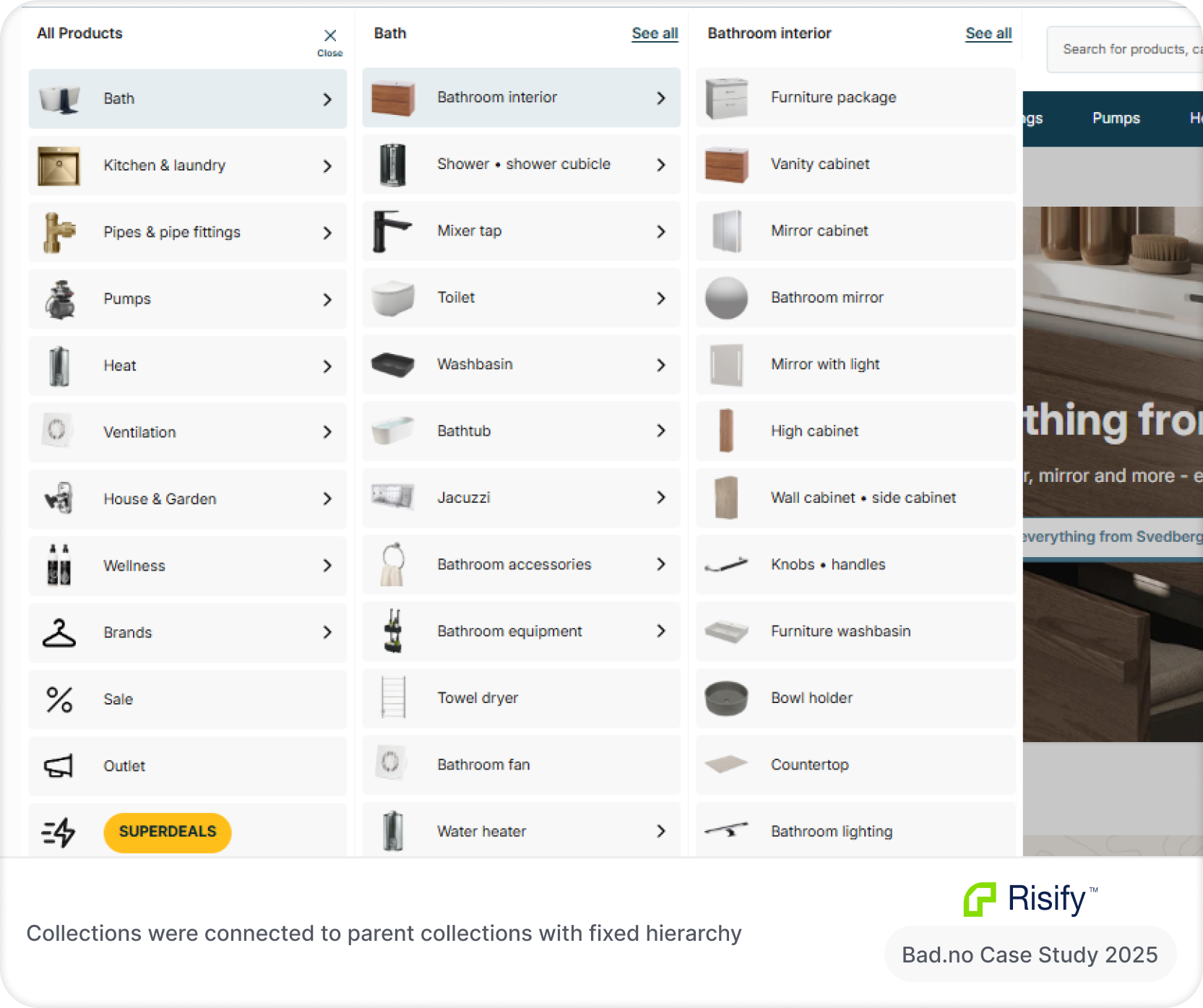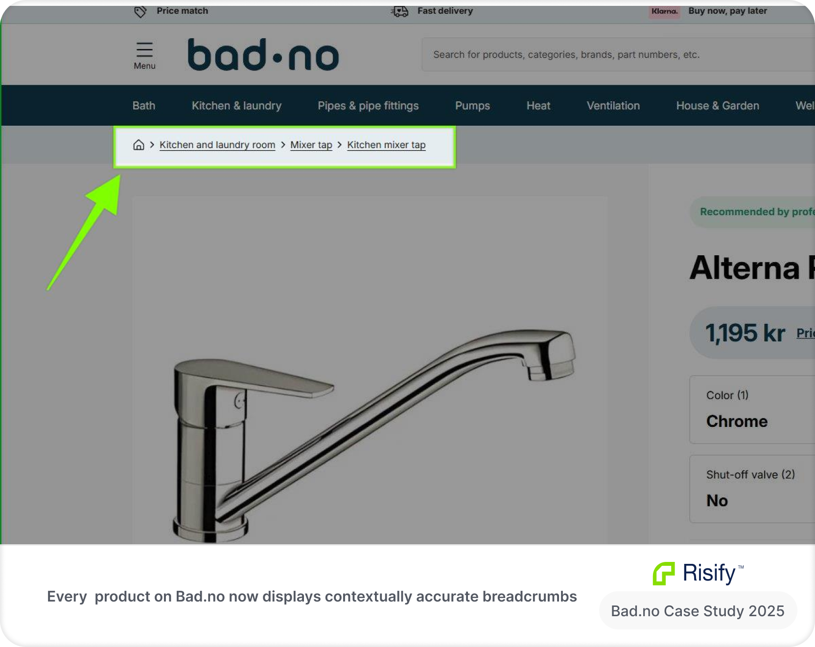 With Risify, every single product on Bad.no now displays contextually accurate breadcrumbs that: