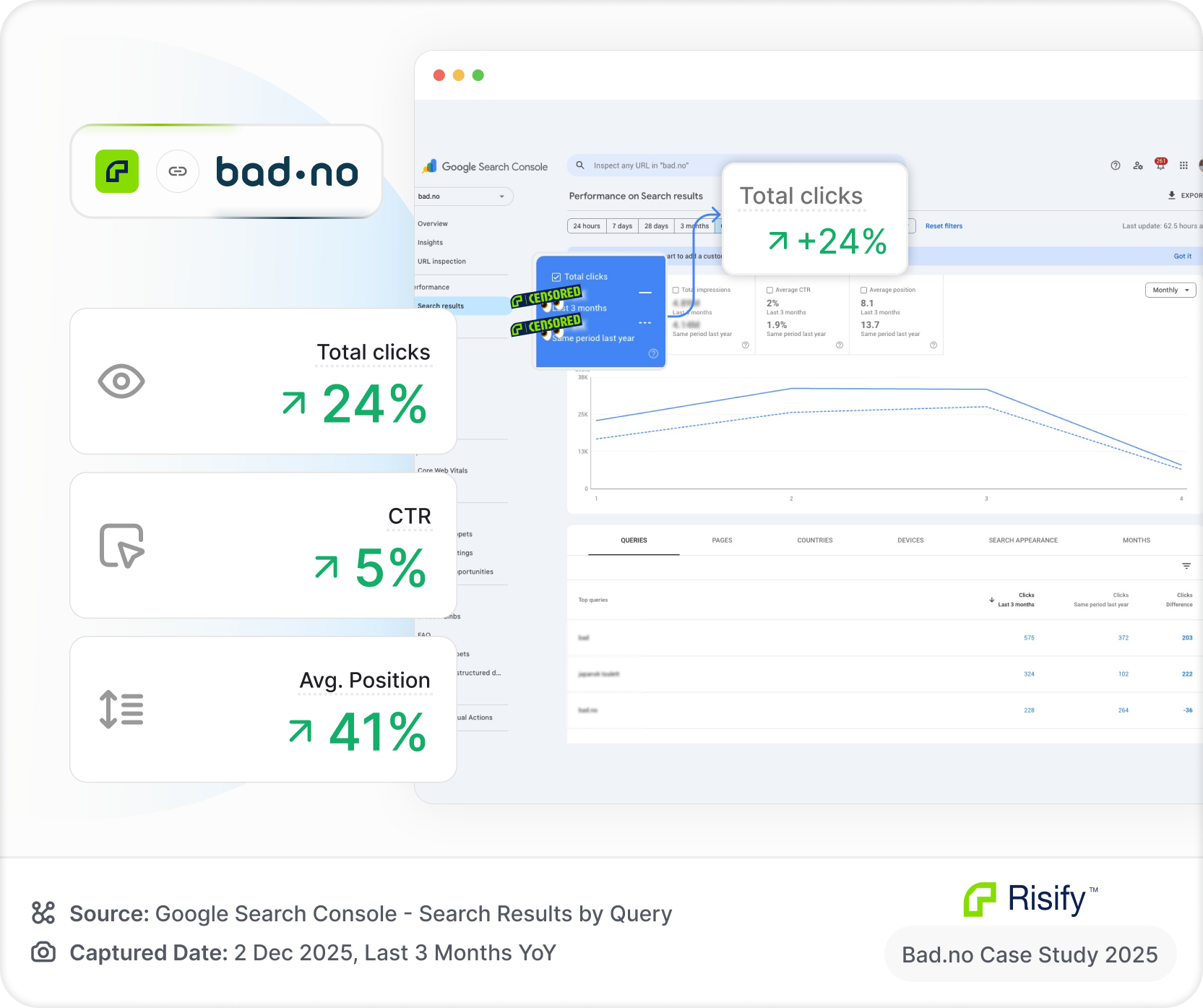 Bad.no partnered with Risify on a comprehensive Risify Plus engagement. Working together, we built a structured foundation that would support sustained organic growth.