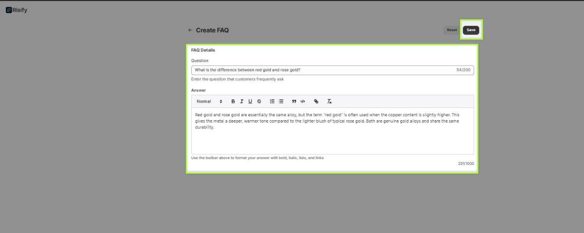 Your existing FAQ data will always remain safe in your store, even if you uninstall Risify.