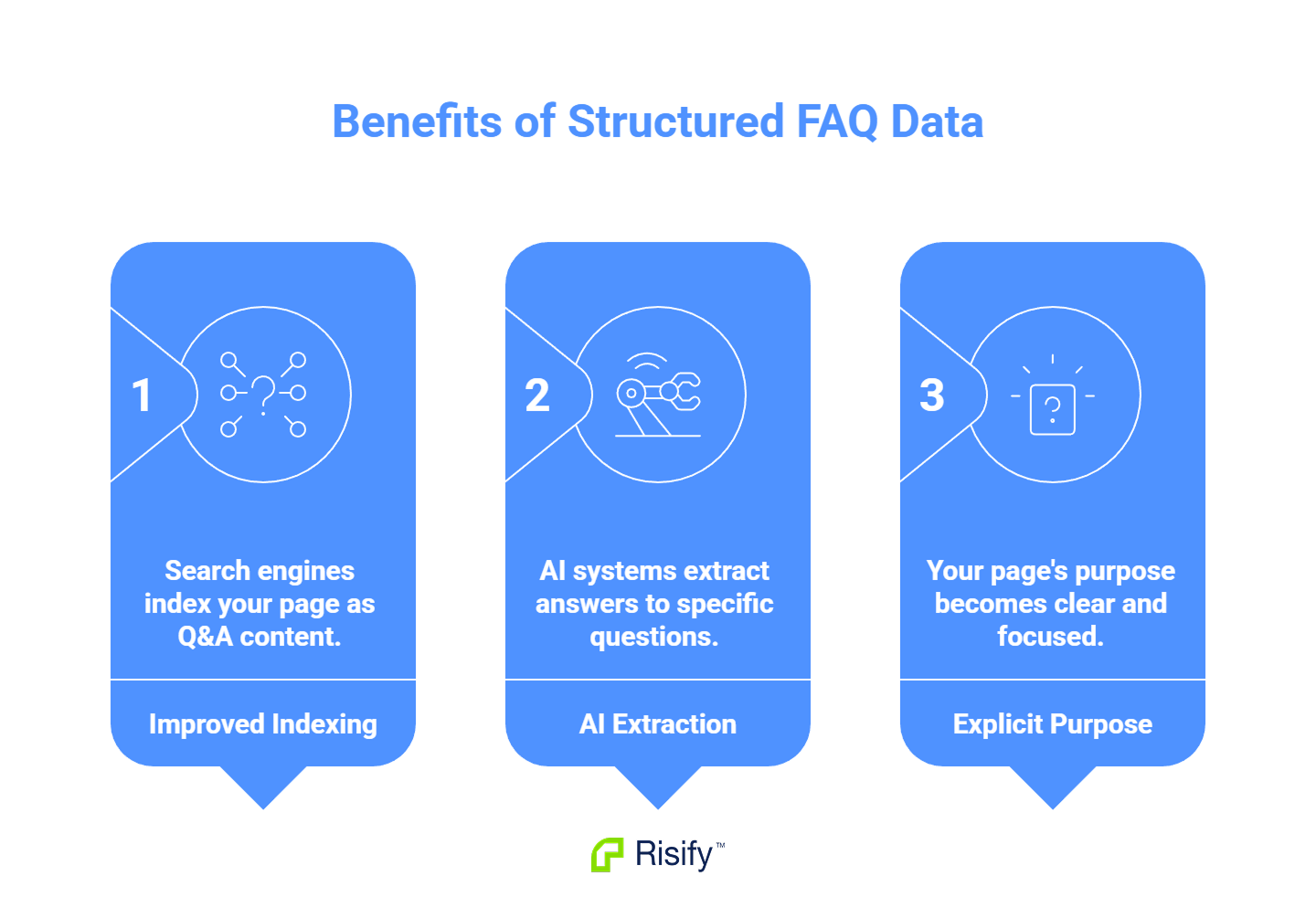This approach ensures your pages have properly structured FAQ data that search engines and AI systems can read, without requiring technical expertise to implement.