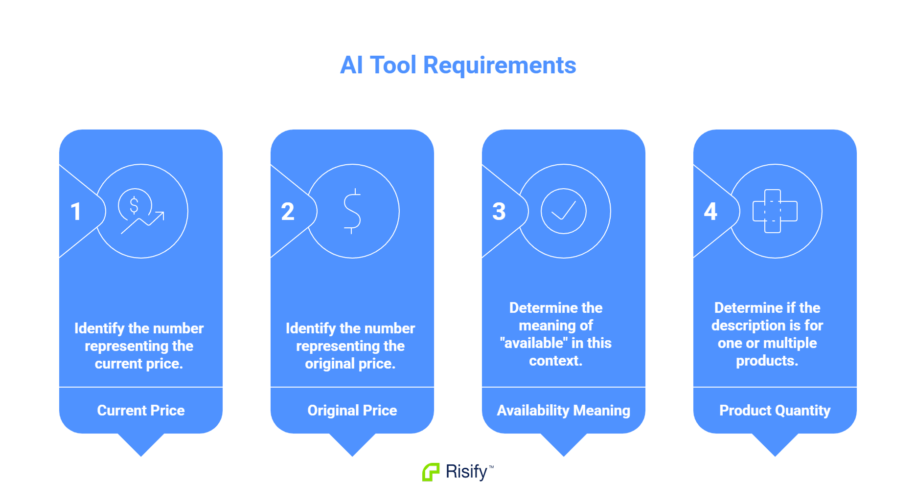 Without schema, the AI tool must scan page content, identify which numbers represent prices, and determine availability from context. This works less reliably across different page formats.