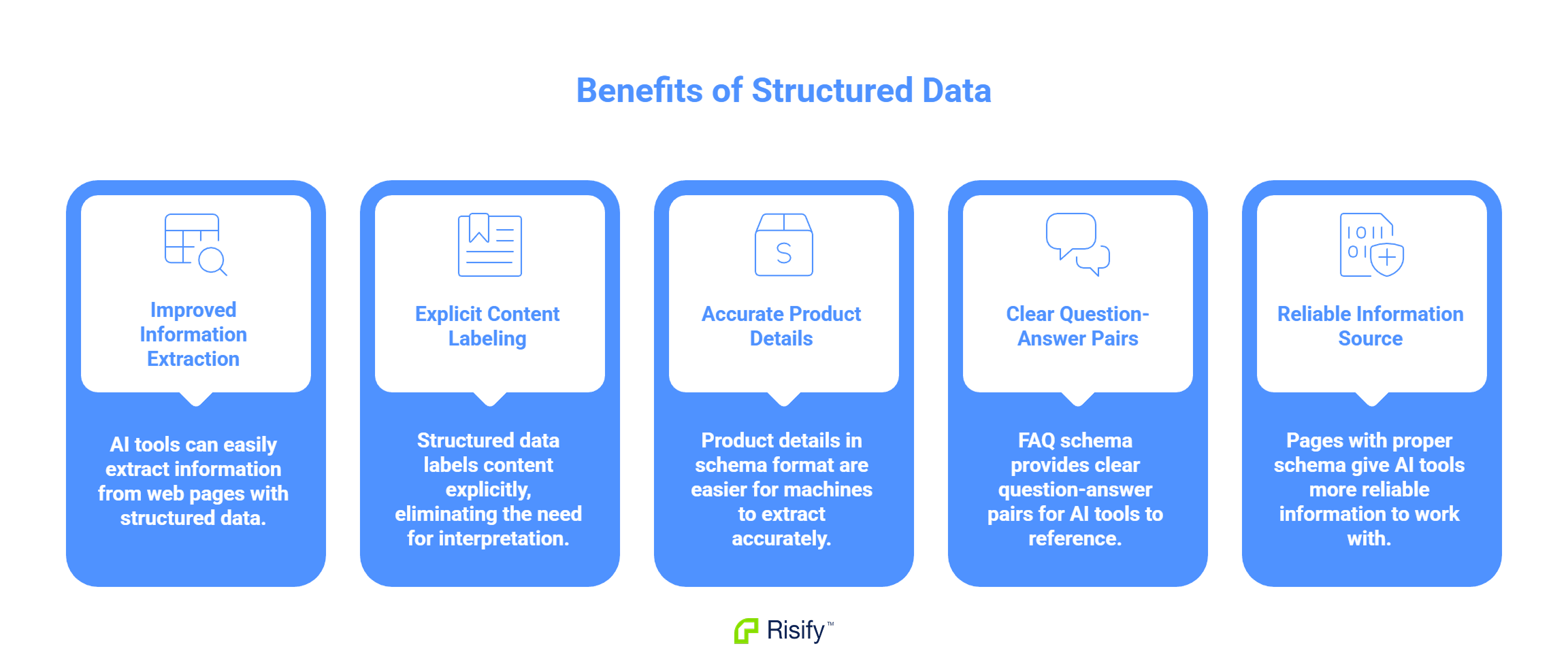 Structured data removes the interpretation step. Instead of parsing paragraphs, the AI tool reads explicit declarations:
