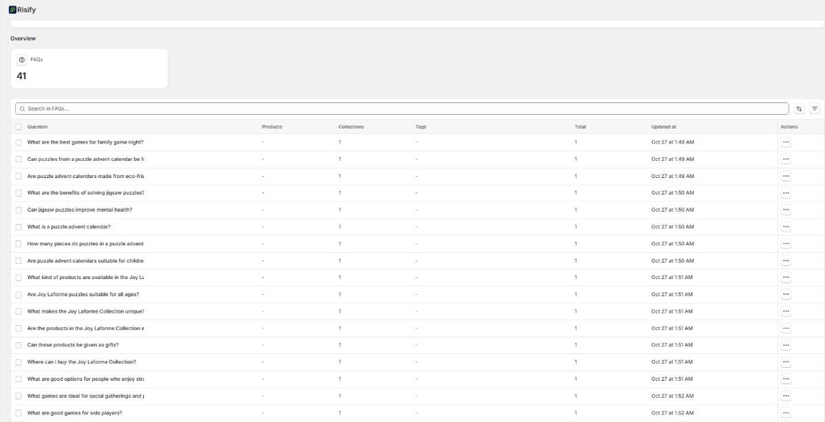 Risify generates structured data automatically as you use its features. Your product information, breadcrumb paths, and FAQ content become machine-readable for both search engines and AI tools.