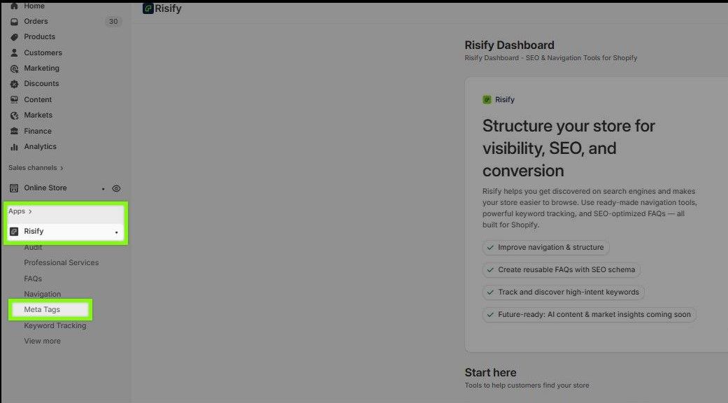 Setting up Keyword Tracking in Risify takes only a few steps, and everything happens directly inside your Shopify panel. You do not need an external SEO tool or any extra setup. Here is the full process from start to finish.