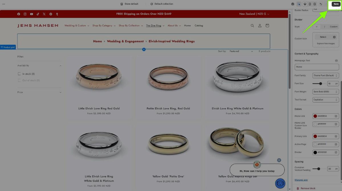 2) When you’re happy with the setup, click Save in the top-right corner of the theme editor.