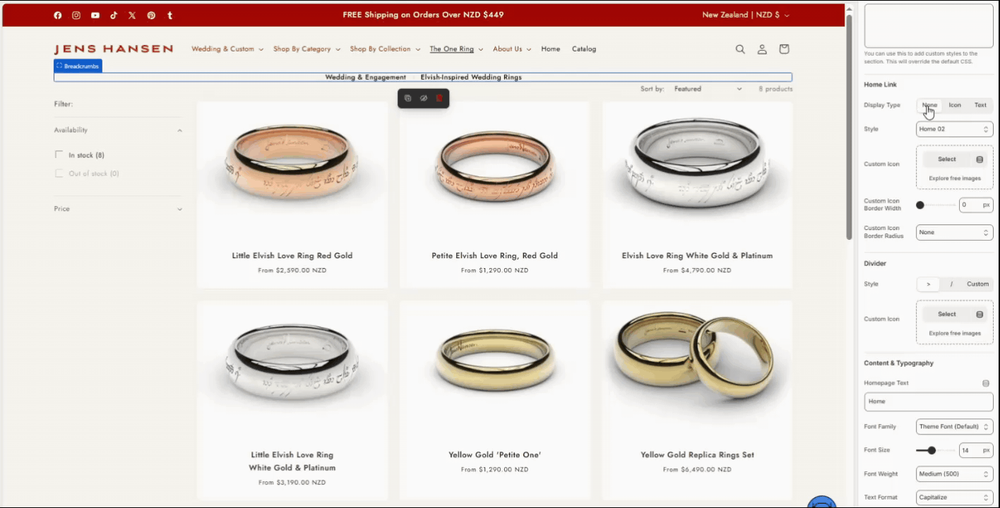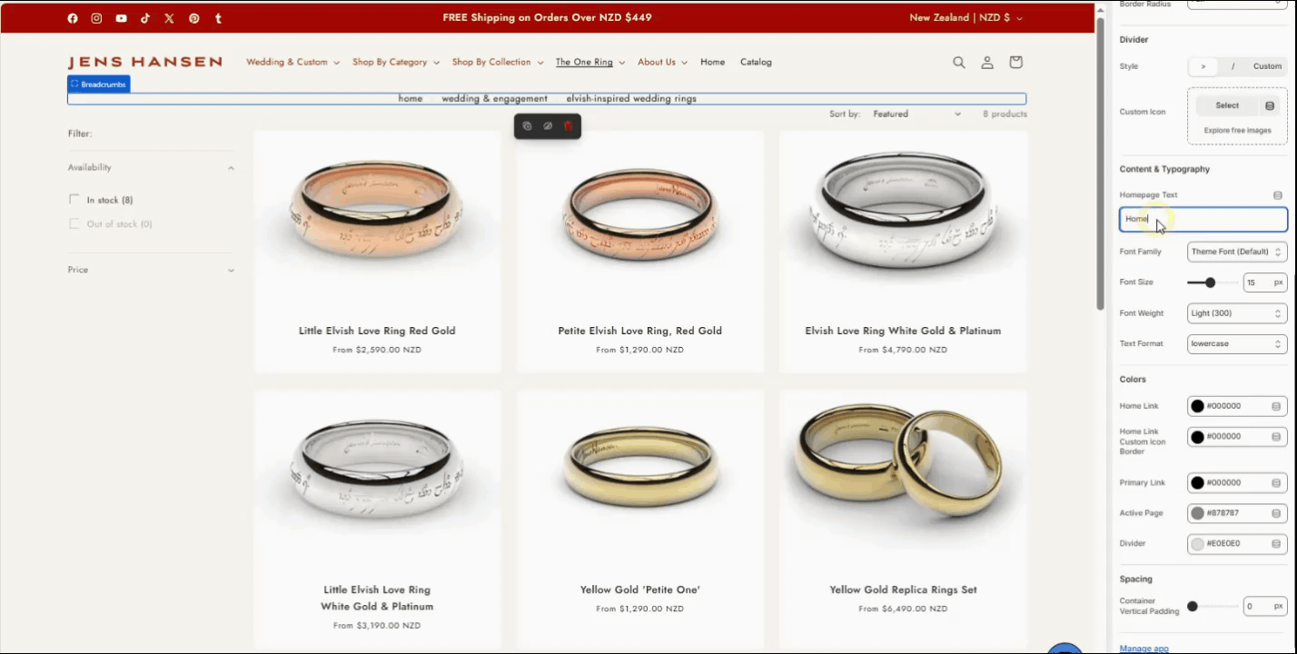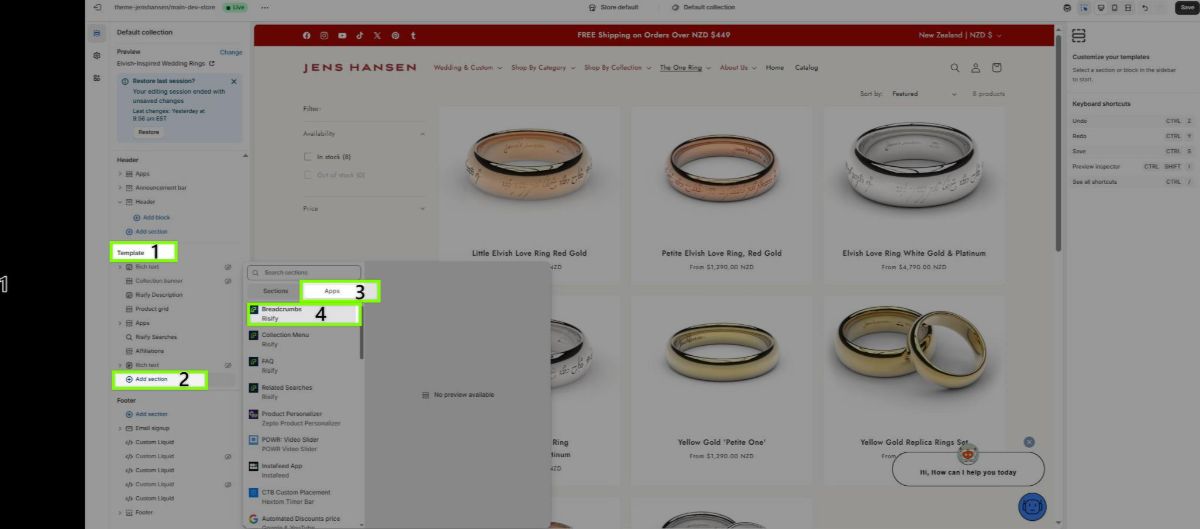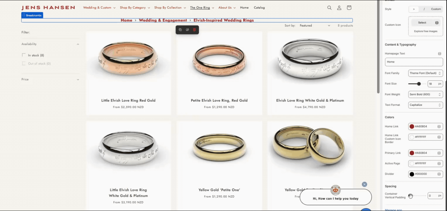 After setting up your breadcrumbs in Phase 1 , you now need to display them on your storefront. This step is done through Shopify’s Theme Customization panel and lets you style and position the breadcrumbs so they fit your store’s design.