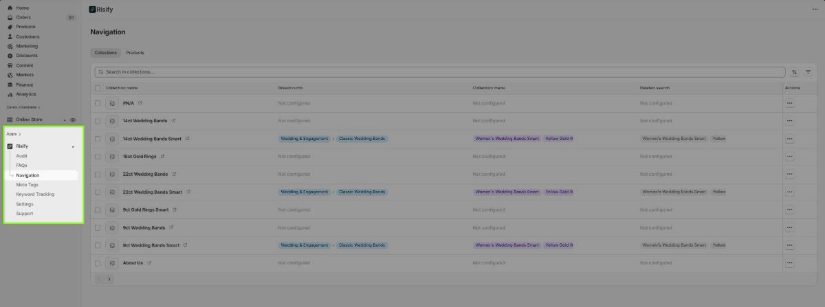Risify solves these gaps by generating a consistent, Google-readable breadcrumb trail on every product and collection page.