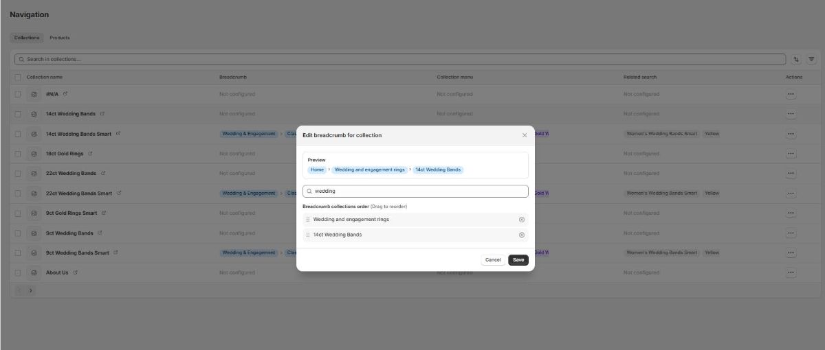 You’ll set up the breadcrumb paths directly inside your Shopify Admin. Start with Collections , then move to Products if needed.