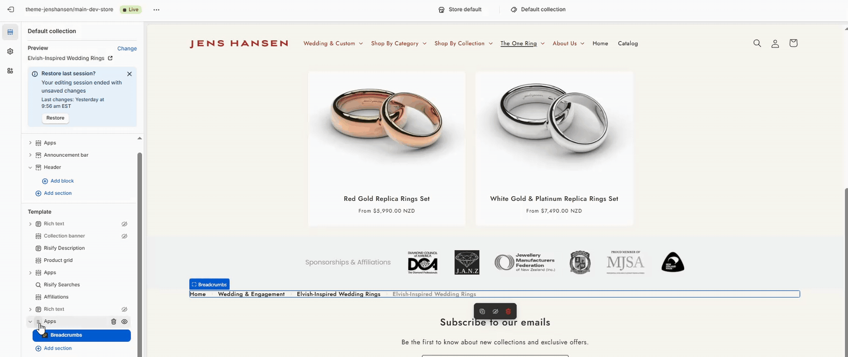 Your breadcrumb structure is now saved inside Risify’s Admin. However, it will not appear on your storefront yet.