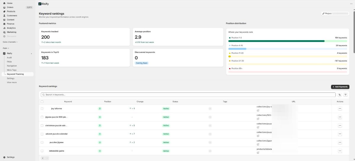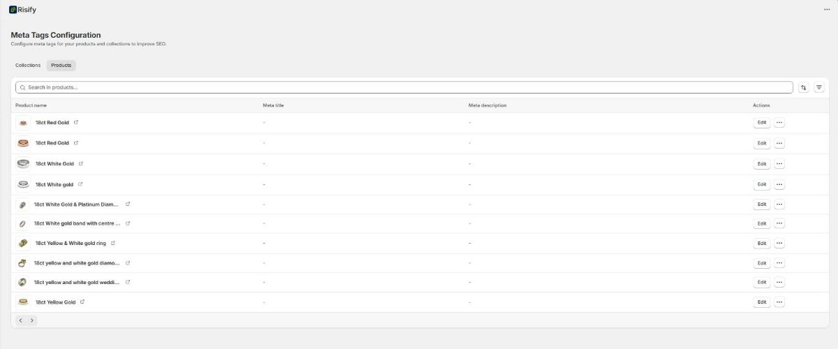 With Risify, you can audit your store, track important keywords, manage meta tags at scale, and implement structured data without leaving your Shopify admin.