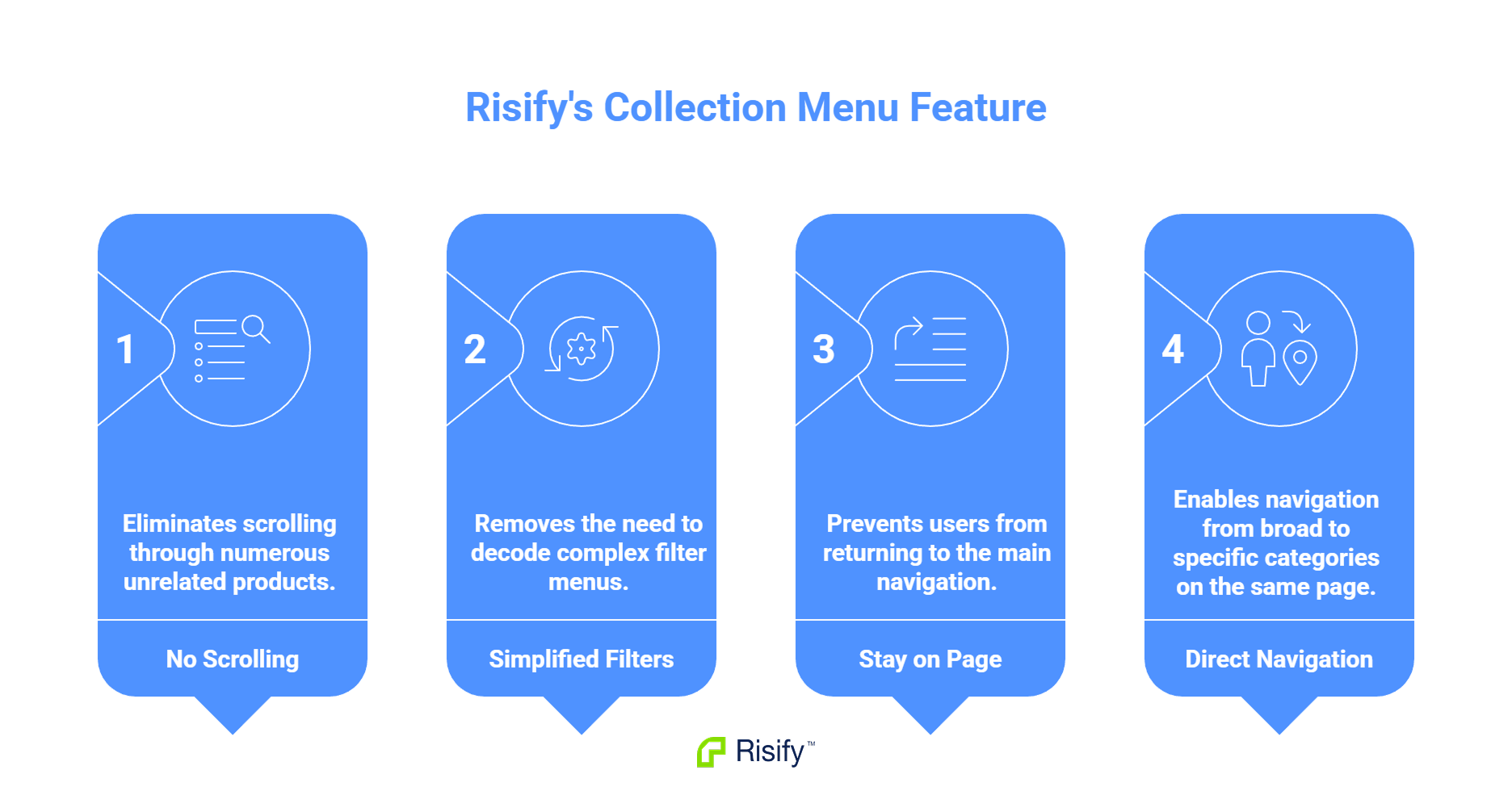 Risify's Collection Menu solves this by letting customers see and click through to specific subcategories without leaving the page or hunting through your main navigation.