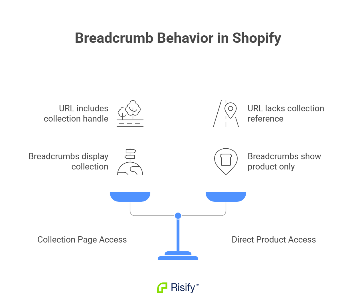 - Risify Breadcrumbs display a fixed path on every product page regardless of how visitors arrive.